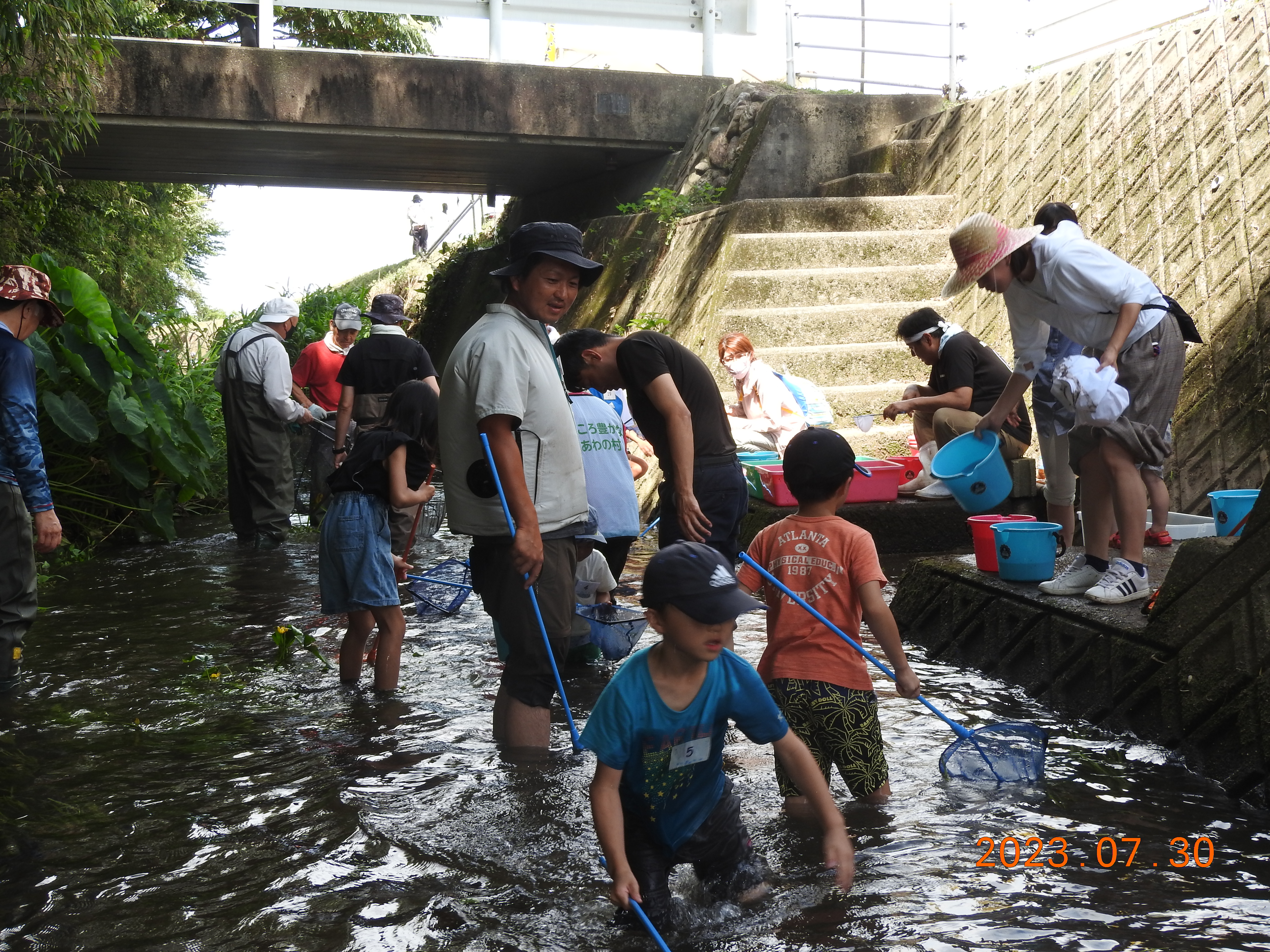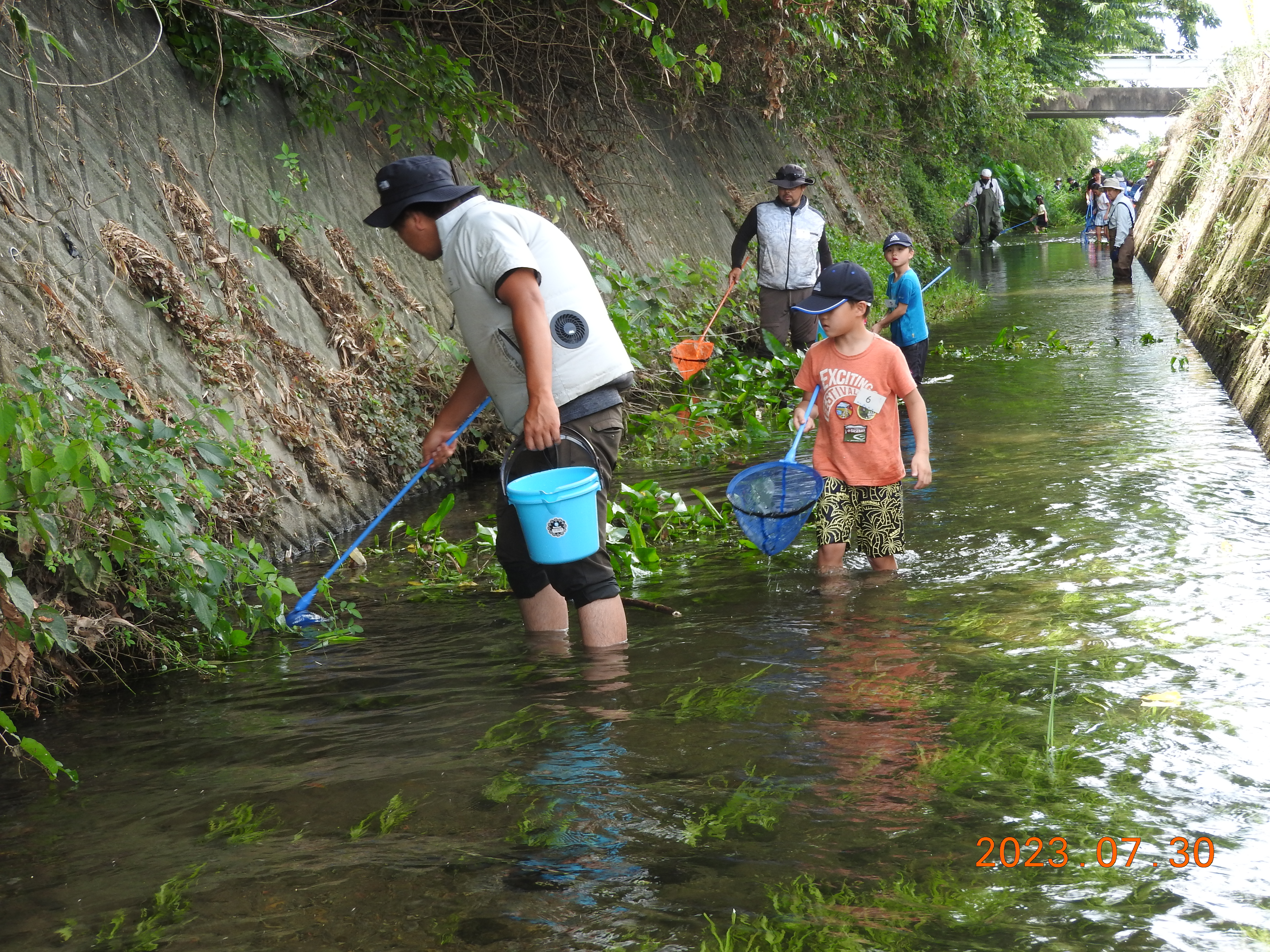 2023/7/30(日) 汁谷川の水生生物の生息状況の調査です。今年で14年目です。